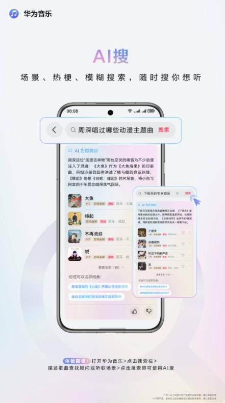 相信不少人都有类似困扰:依稀记得“2025年春晚有首好听的歌曲”“周深唱过的动漫主题曲”,但就是想不起歌名。华为音乐的“AI搜”功能,依托强大的跨域内容知识库和大模型语义理解等能力,能秒懂需求并精准找到那首“说不出名字但就是想听”的歌;基于角色、情节、画面等产生的需求,都能被转化为对应的歌曲列表。